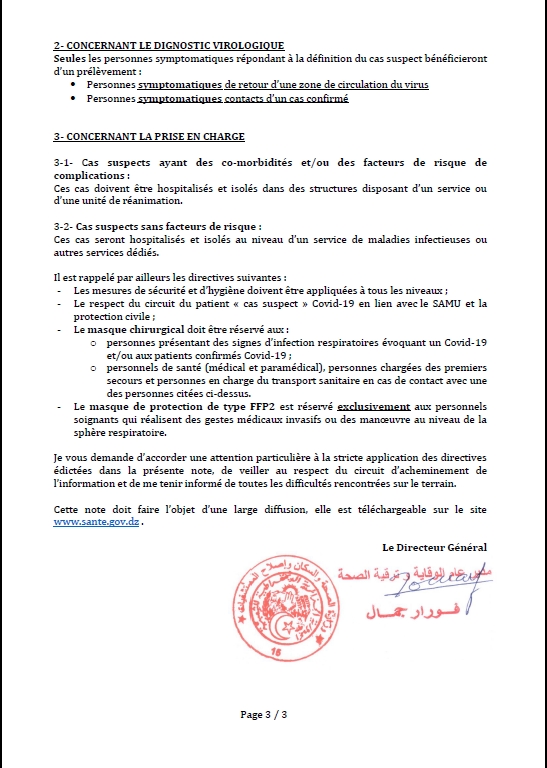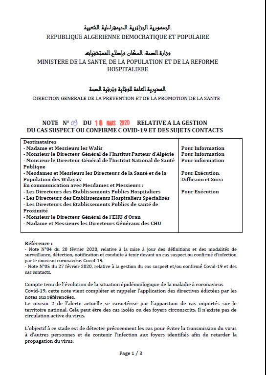 En application des dispositions du décret exécutif n° 70-20 du 24/03/2020 précisant les mesures de prévention et de lutte contre la propagation de l’épidémie du Coronavirus (Covid-19),
